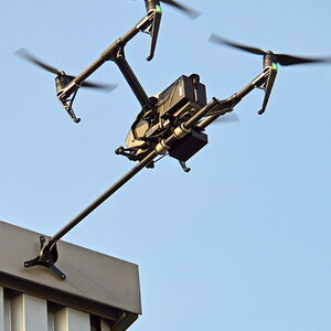 The drones from the company U-ROB, Bielefeld, are used in many industries for the inspection of plants, piping, cooling towers, chimneys, etc. The revision of buildings or large machinery is facilitated by the use of drones. Meanwhile, drones are not only used for visual inspection with the help of cameras, but they are increasingly used as a device carrier to bring the necessary measuring equipment for specific tasks on site. Because of the outstanding flight characteristics and in addition to non-contact measurement methods, it is now also possible to use methods which require contact with the measurement object. As proof for these applications a coating thickness measuring device from the company PHYNIX from Neuss was mounted on a drone. It is now possible, to measure the corrosion protection of hard to reach objects, such as steel bridges, pylons, chimneys, pipelines, tank farms or wind turbines at low cost as the use of industrial climbers is avoided.